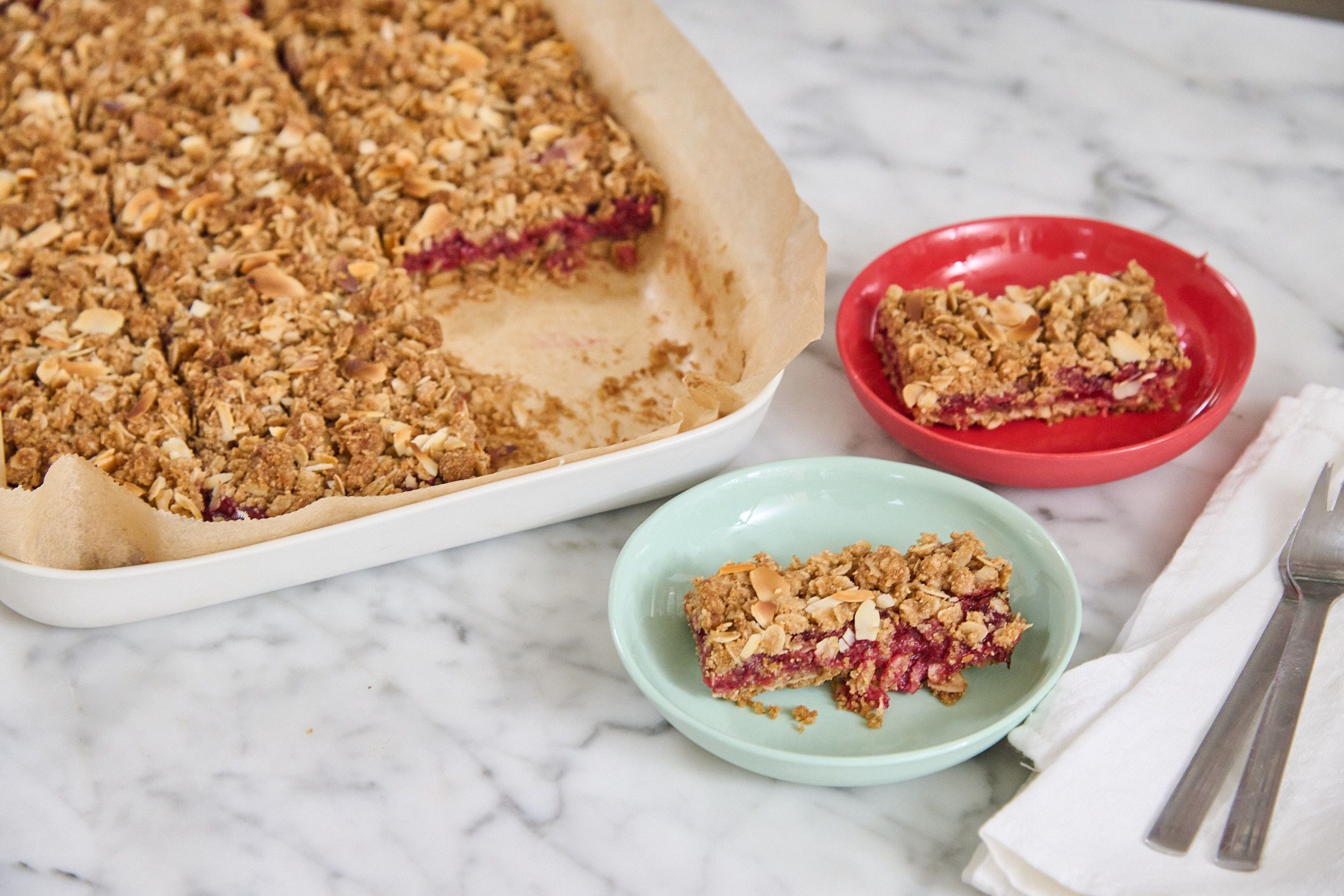 Born a number of years ago as a way to use up a mass of leftover Thanksgiving cranberry sauce, these are found on repeat from the first glimpse of cranberries on the shelves until strawberries appear. I actually make cranberry sauce specifically for these bars, using the leftovers (which keeps for weeks in the fridge) not only on turkey, but on chicken, salmon, with roast pumpkin, on a cheese sandwich and with my granola and yoghurt in the morning.