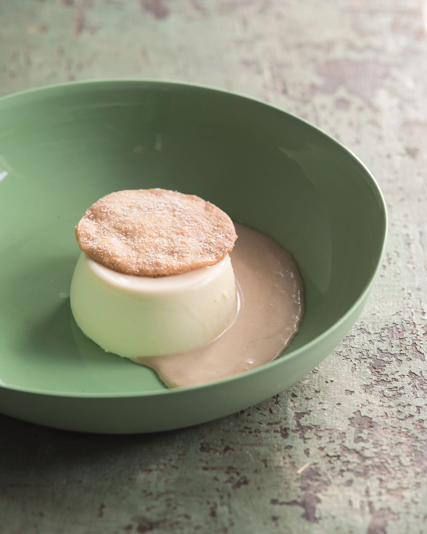 To turn out the panna cotta, dip each mould in hot water for 20 seconds to loosen, then invert onto serving plates. The panna cotta should slide out from the mould. Spoon over the masala chai sauce to make a 1 cm-thick layer and serve with the cumin shortbread.