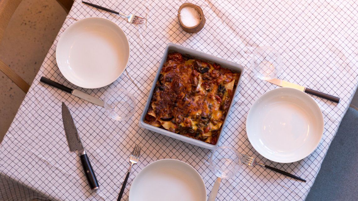 The range includes bakers, a pie dish, mixers, a mortar & pestle, and Shelley’s favourite, the Flan Dish. “It’s the most elegant of the shapes. I love making desserts, so that piece is so good for so many things”. Shelley recently invited us into her home to cook some of her and her family’s favourite dishes in a variety of Mud bakeware, including an eggplant lasagne in the Baker Medium, a Bakewell tart in the Flan Dish and a decadent self-saucing chocolate pudding in the Pudding Bowl. “I’m fond of the pudding bowl, because pudding is a dessert my kids love. It’s really great to mix something, bake it, take it to the table then stick it in the dishwasher afterward.”