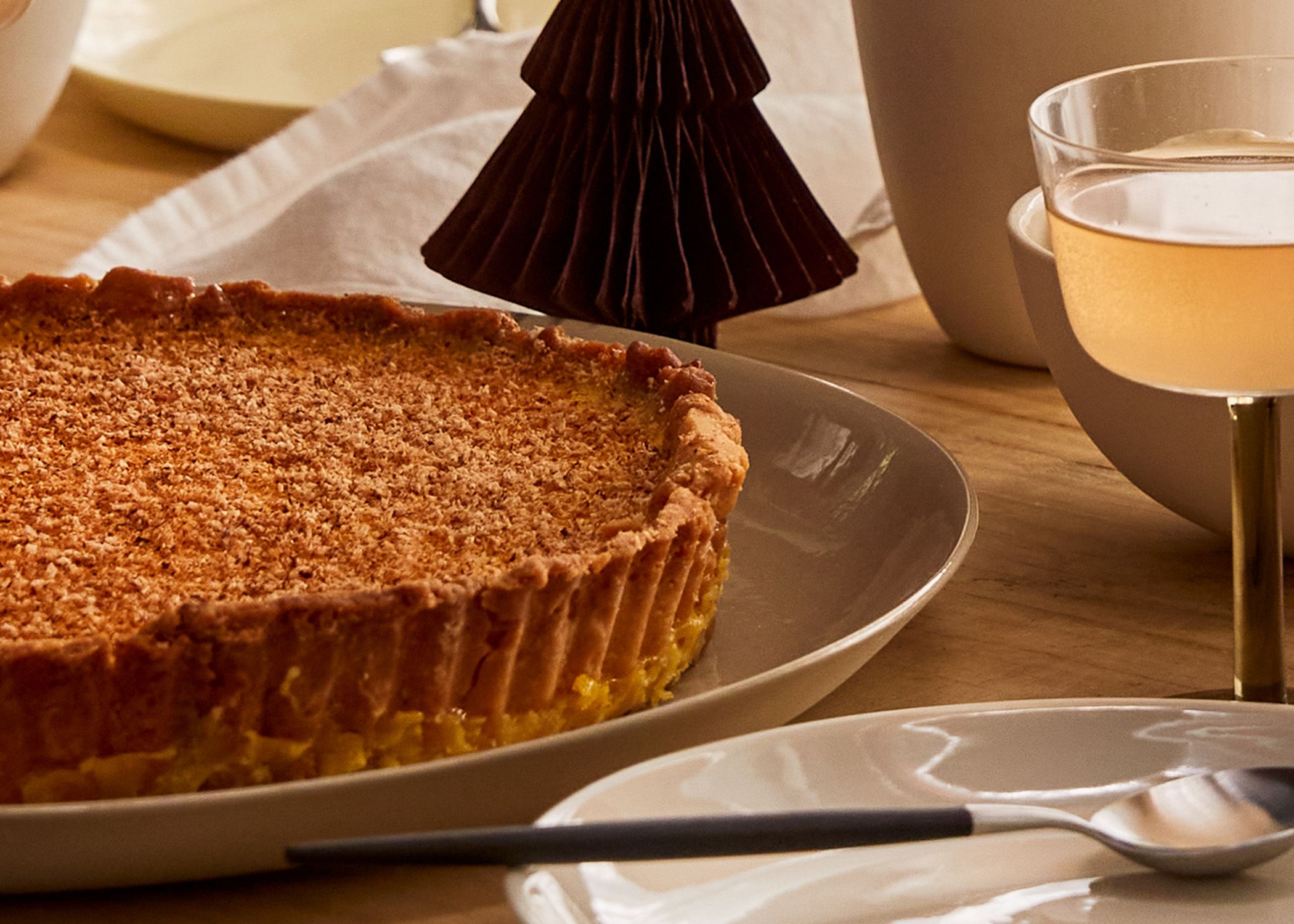 Once refrigerated and the butter is set, take out from the fridge and roll out the dough on a floured work surface to approx 3mm thick. Line the dough onto a 30 cm loose-bottomed tart tin. Refrigerate for another hour, or alternatively, place in the freezer for 20 minutes to set once again.