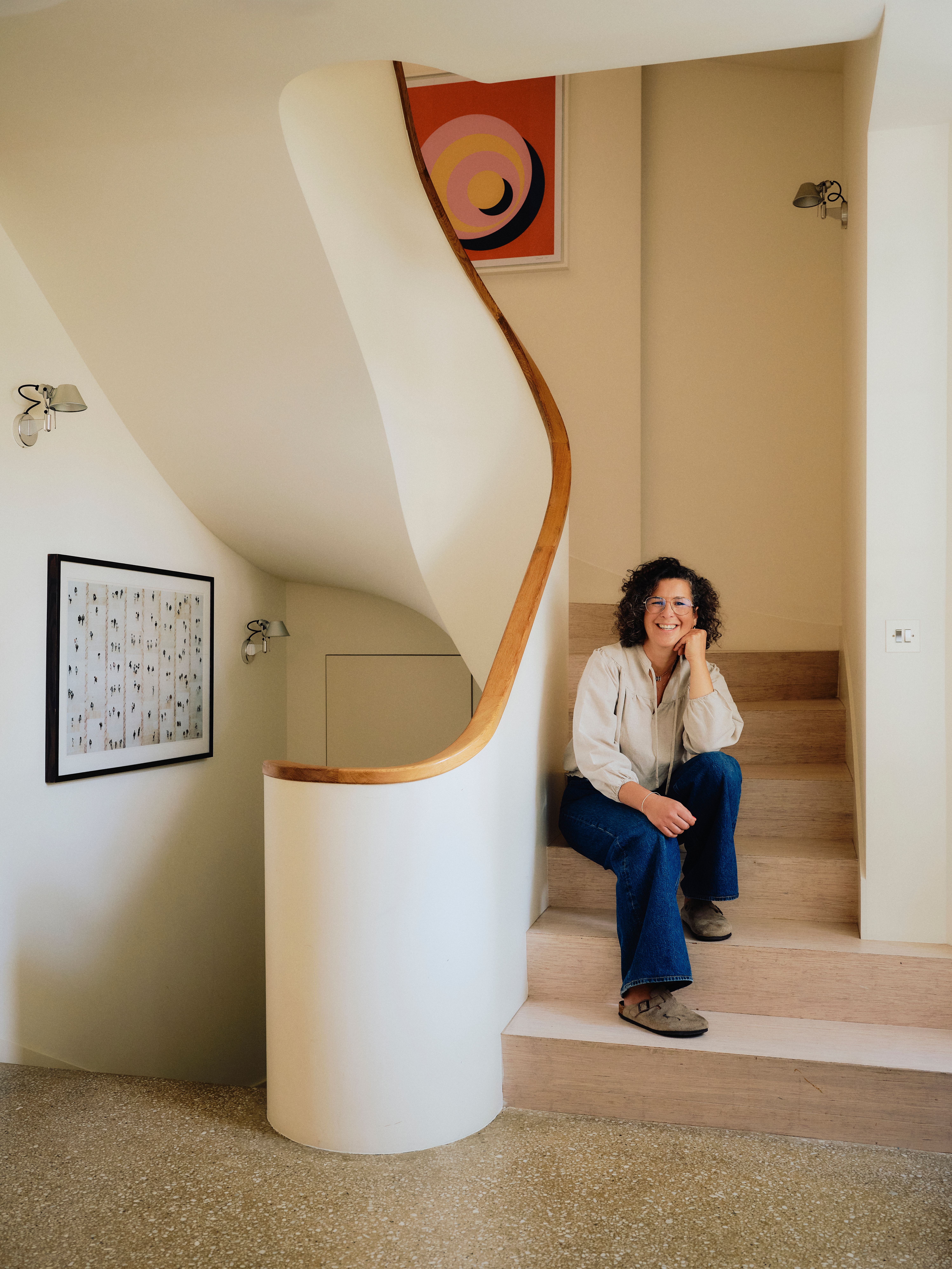 I designed my home with a simple, contemporary open layout, prioritising an inviting and relaxed atmosphere. There are always tucked-away piles of unfinished projects and notepads filled with lists of ideas and things to do, giving you an instant sense of the delightful chaos in this household. It’s filled with an eclectic mix of furniture and items I have collected and accumulated over the years, all of which reflect my style and interests.