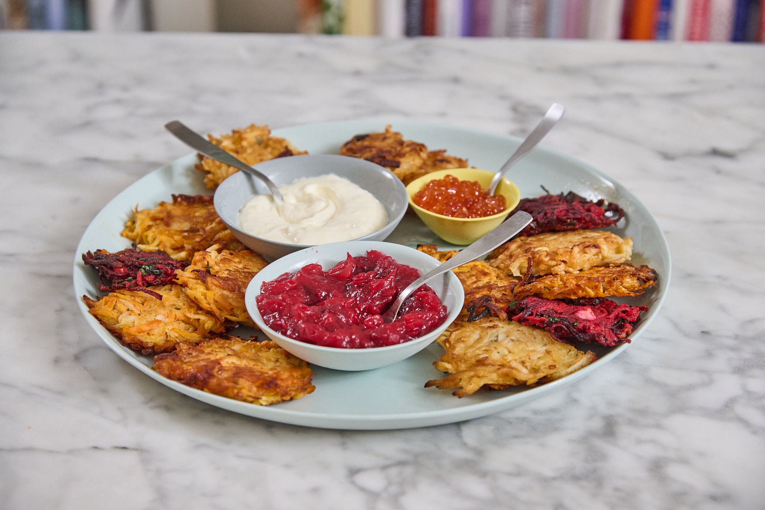 I applaud the unwritten rule that every holiday must be honoured with festive fare. Latkes are a Hanukkah staple as we light menorahs and eat fried food to symbolise the miracle of the single cruse of oil that lasted for 8 days. These crisp mouthfuls of pure potato joy (and their root vegetable cousin varieties) are my favourite way to celebrate and consumed by the dozens. No complaints here on the fried food element of the holiday.