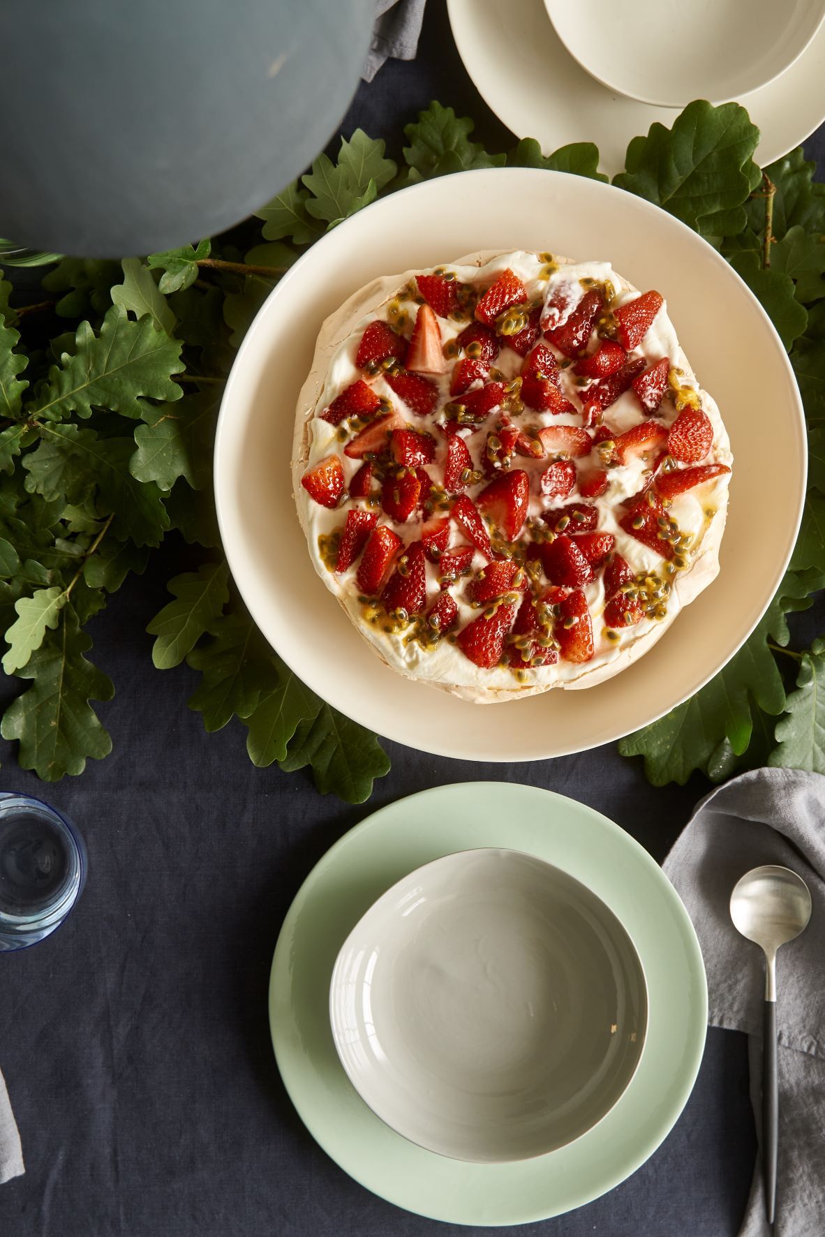 To make the yoghurt cream, whip the cream and fold the plain yoghurt through it.