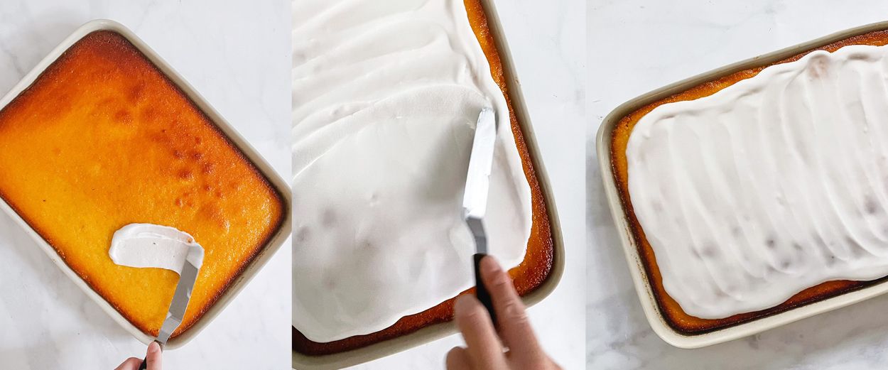 2. Use the back of a spoon or palette knife to spread over the cake.