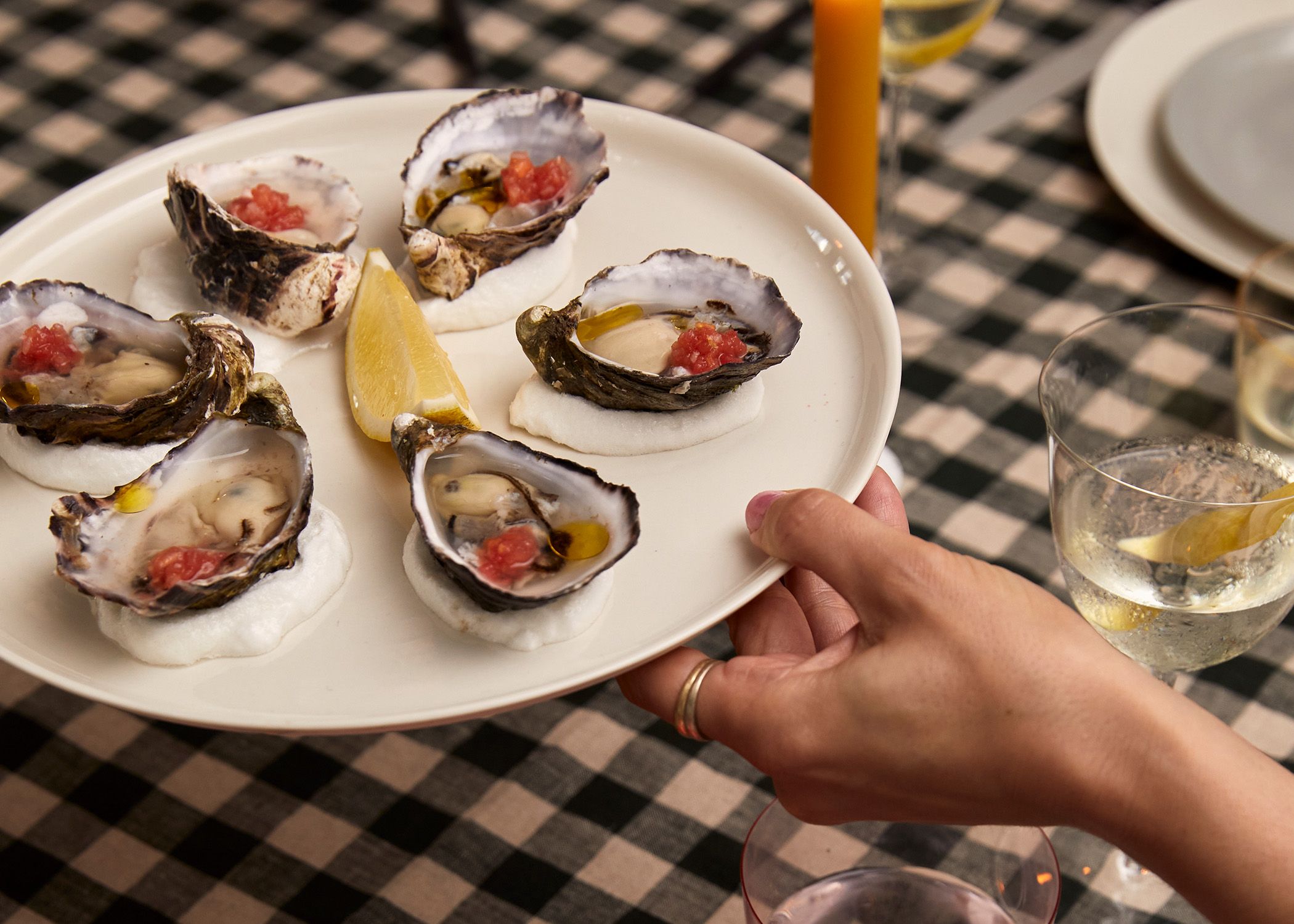 To serve, place oysters onto your serving plate, garnish with a ¼ tsp of the tomato mignonette on each oyster. Dress with a drop of extra-virgin olive oil to finish.