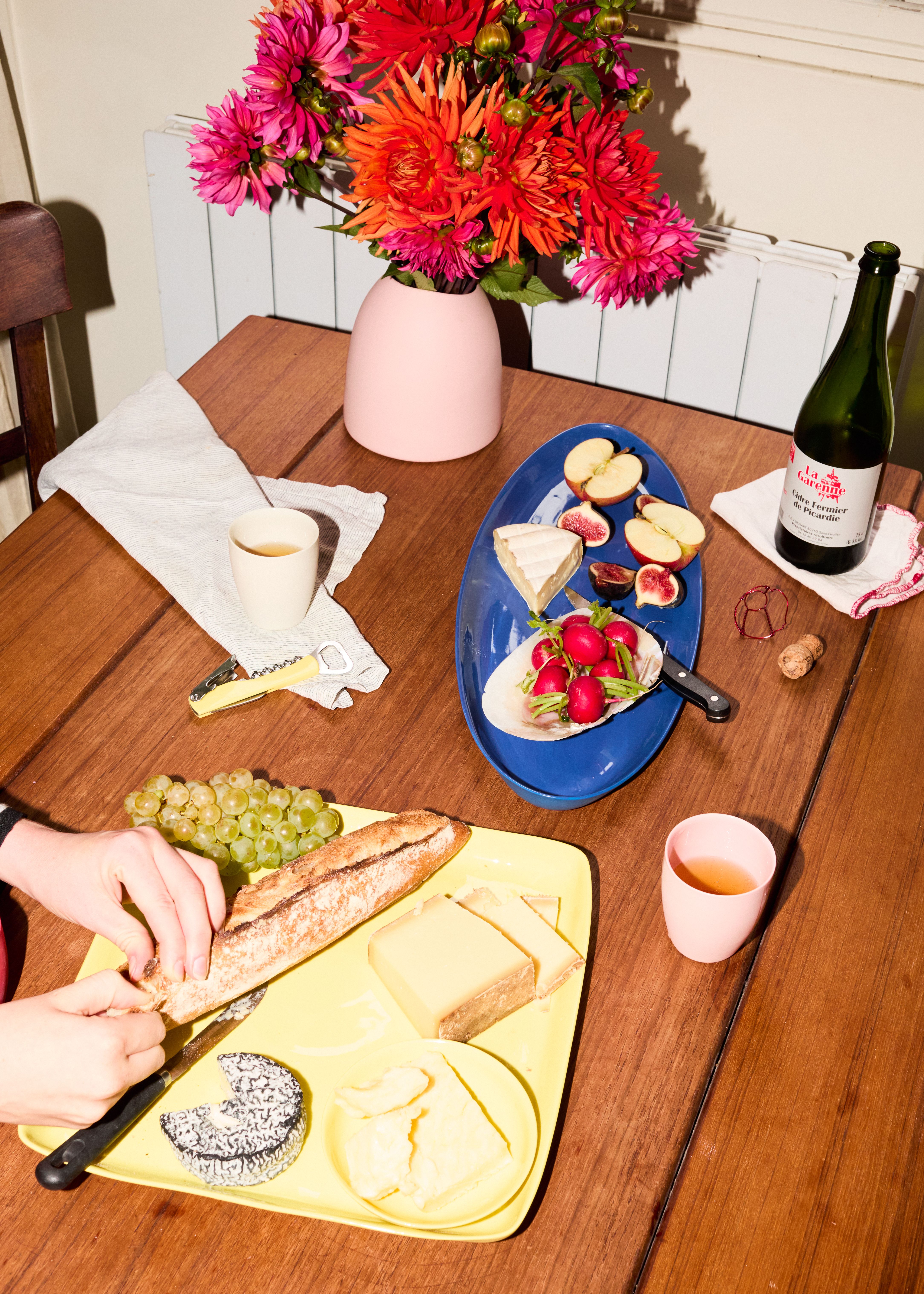Colour and texture are so important to me, especially in my home. Since this house is a rental, most of the finishes are neutral and wood. I bring my own personality to the space with pops of colour in my tableware and pieces from Mud. It’s a simple way to make the space feel warm and creative.