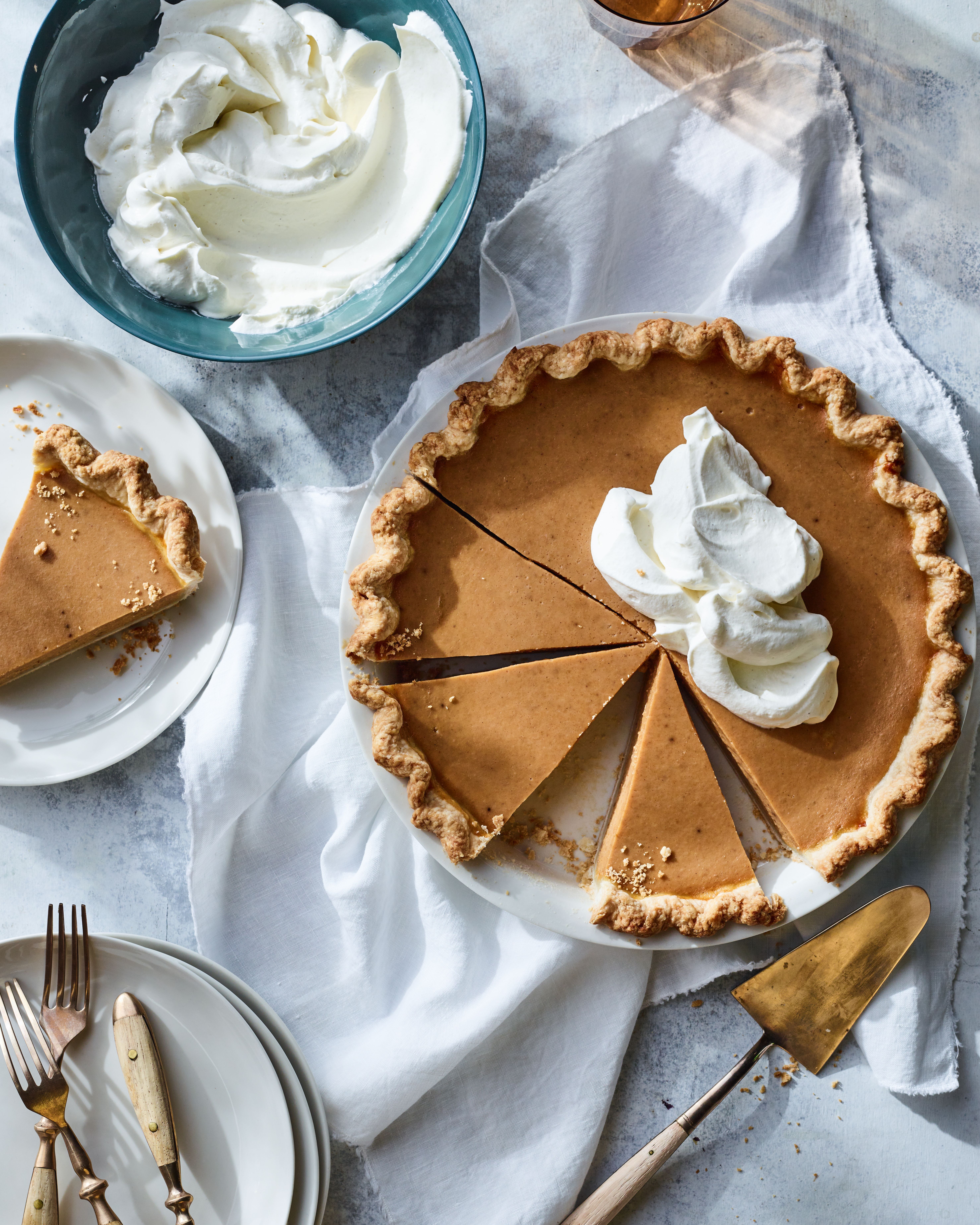 Pour the pumpkin filling into the prepared pie crust.
