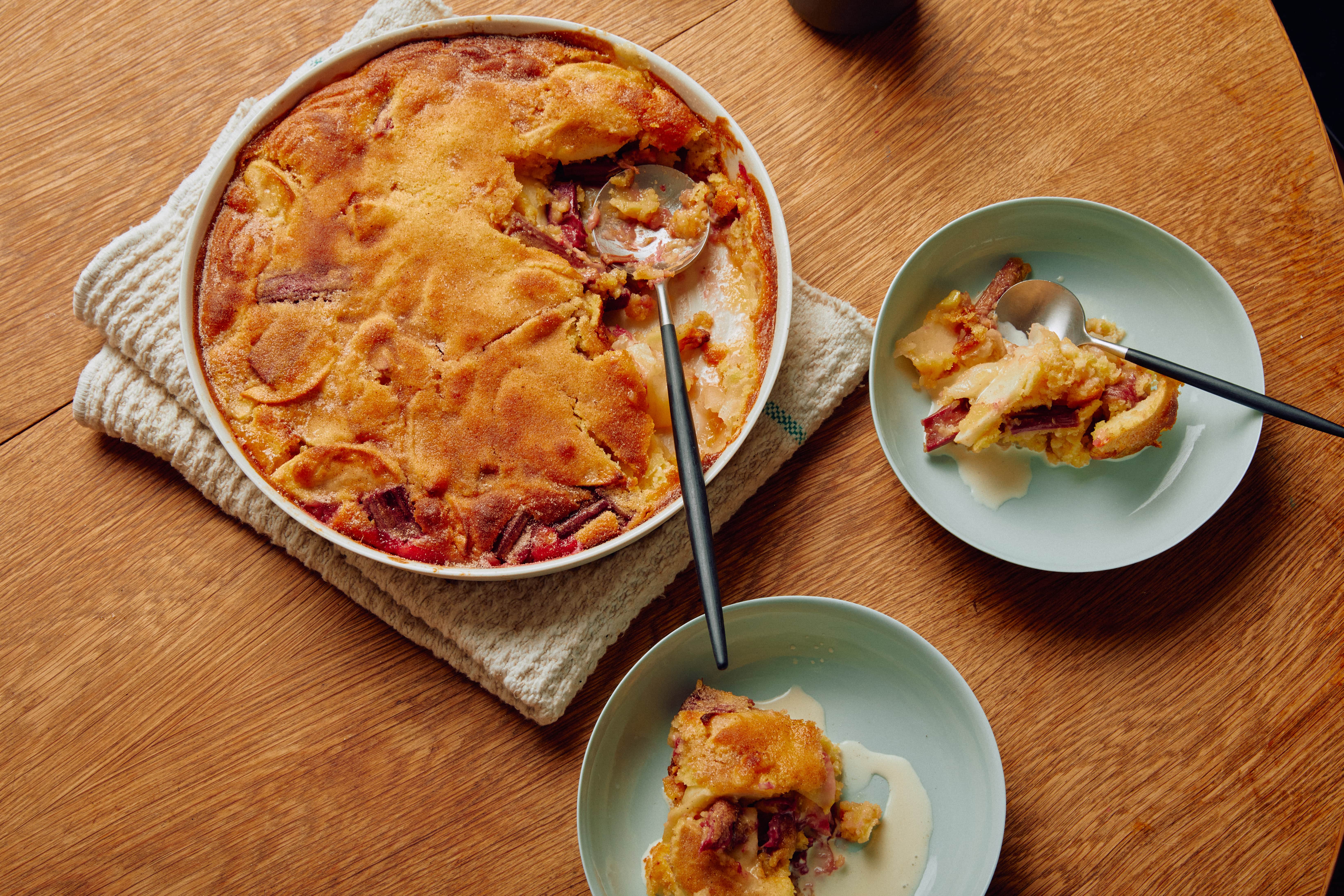 It’s almost like a crumble, but with a spongy cake on top instead, it is really comforting and sees you well into the cooler months. Substitute the rhubarb for blackberries, fresh in late summer or frozen in the depths of winter.