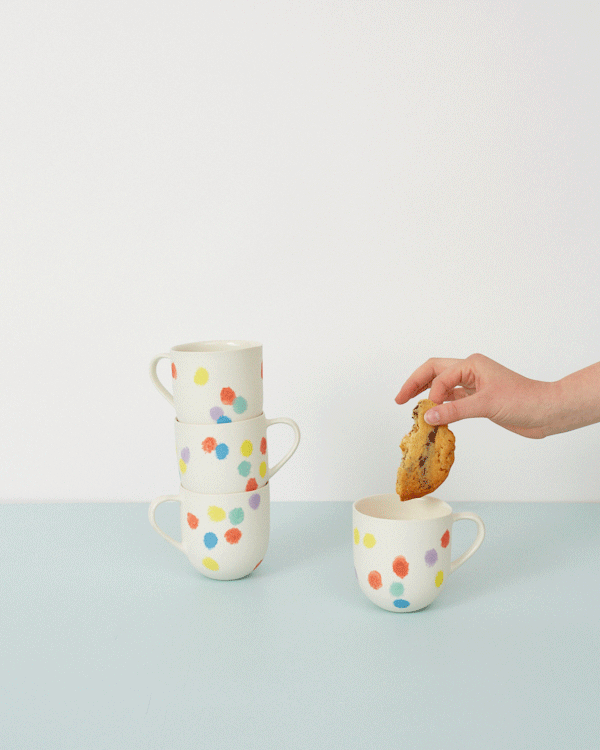 Handmade in our Marrickville studio, each mug is personally finished with a peppering of colourful underglaze dots by founder Shelley Simpson.