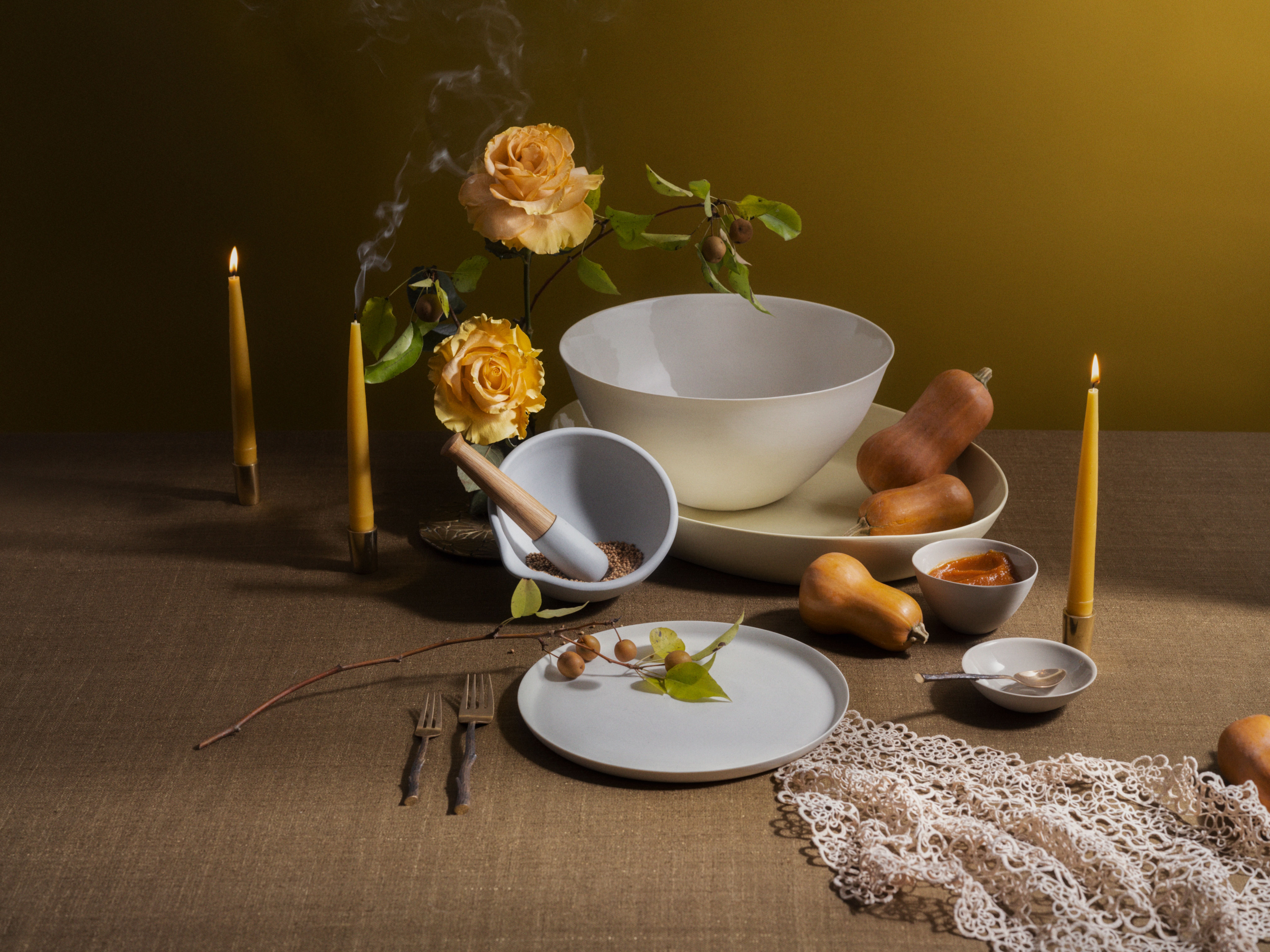 “Thanksgiving is a true fall holiday and I swap out my white plates for harvest colours… I find these tones very appealing with a traditional thanksgiving dinner. They set a more casual mood which is the calling card of our day.”