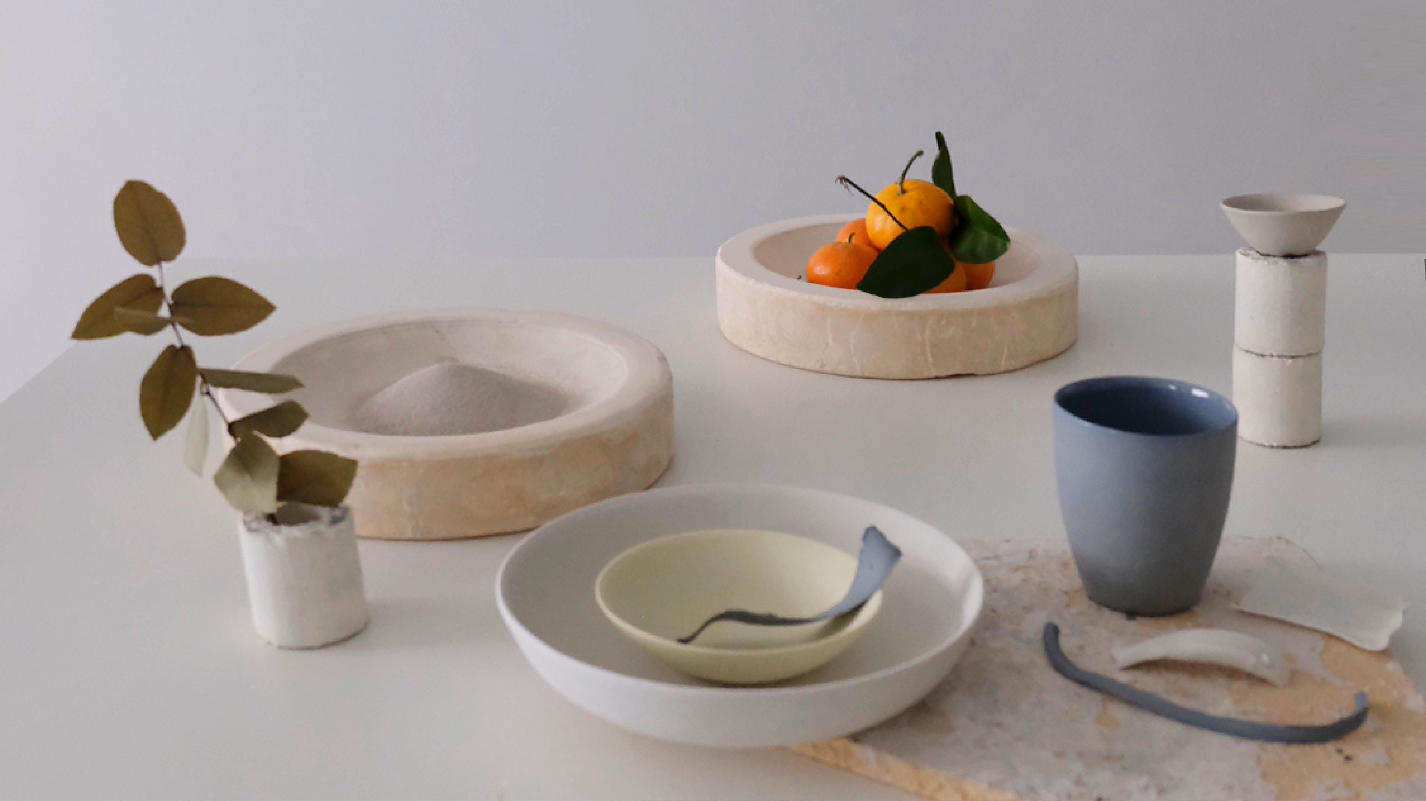 At STILL / LIFE we introduced a new matte finish across our full collection of porcelain tableware and lighting, which is now available as a special order in all 20 colours and 80 shapes. The introduction of this new finish is in honour of our 25th anniversary which we are proudly celebrating throughout 2019. As well as offering better durability for commercial environments, the new finish also absorbs light, creating a particularly sculptural effect – read more about it here. On show at STILL / LIFE was a selection of our favourite shapes from our Pebble, Noodle, Nest and Flared collections in an emotive colour palette of Ink, Citrus, Sand, Steel and Milk. The exhibition also included elements used during our handcrafted process, from molds to pigments and various tools and trimmings.