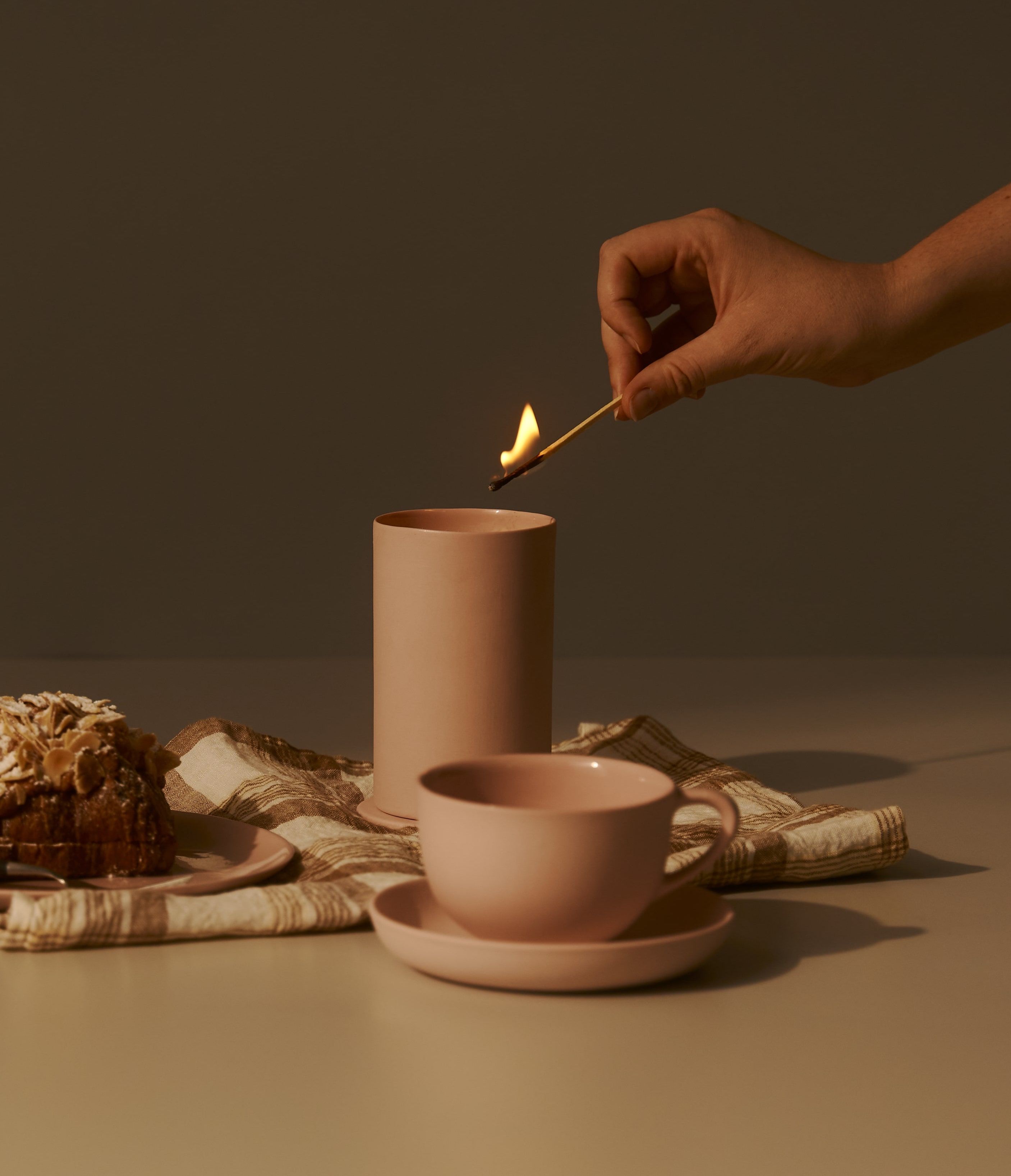 Our handmade porcelain candles have been designed to be refillable after 80 hours of burn time. The custom-scented fragrances are hand poured in Melbourne and blended using natural soy, beeswax and non-toxic paraffin wax.